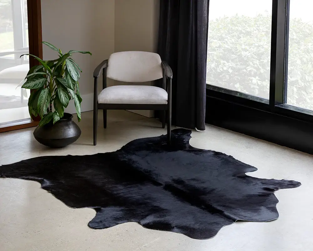 Add a flair of luxury and a pop of personality to any space with this one-of-a-kind cowhide rug. As cowhide is a natural material, organic markings on the animal may still be visible and there may be apparent differences in hair length, colour, and pattern. No two pieces are alike and images on site may not capture these qualities precisely. Variations in colour, design and size are to be expected and embraced in each rug due to the distinctive weaving process followed by each artisan, resulting in a truly one-of-a-kind piece.