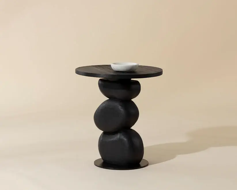 Inspired by organic shapes in nature, the Paplo End Table brings a dynamic visual appeal to any space. Incredibly sturdy and compact, this end table is crafted from mango wood with a powder-coated finish and displays a distinctive base reminiscent of a stack of rocks.