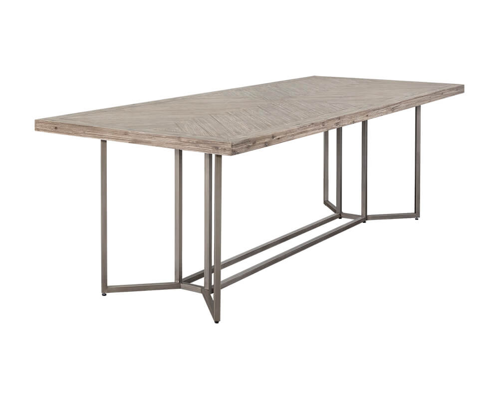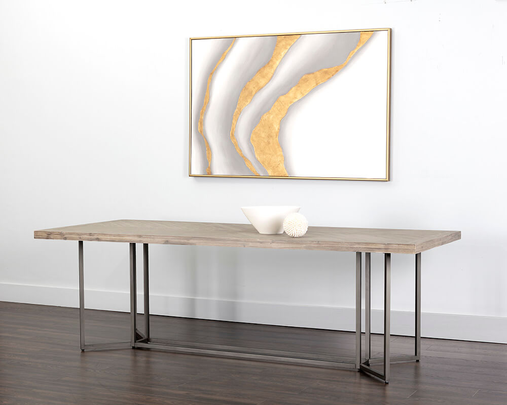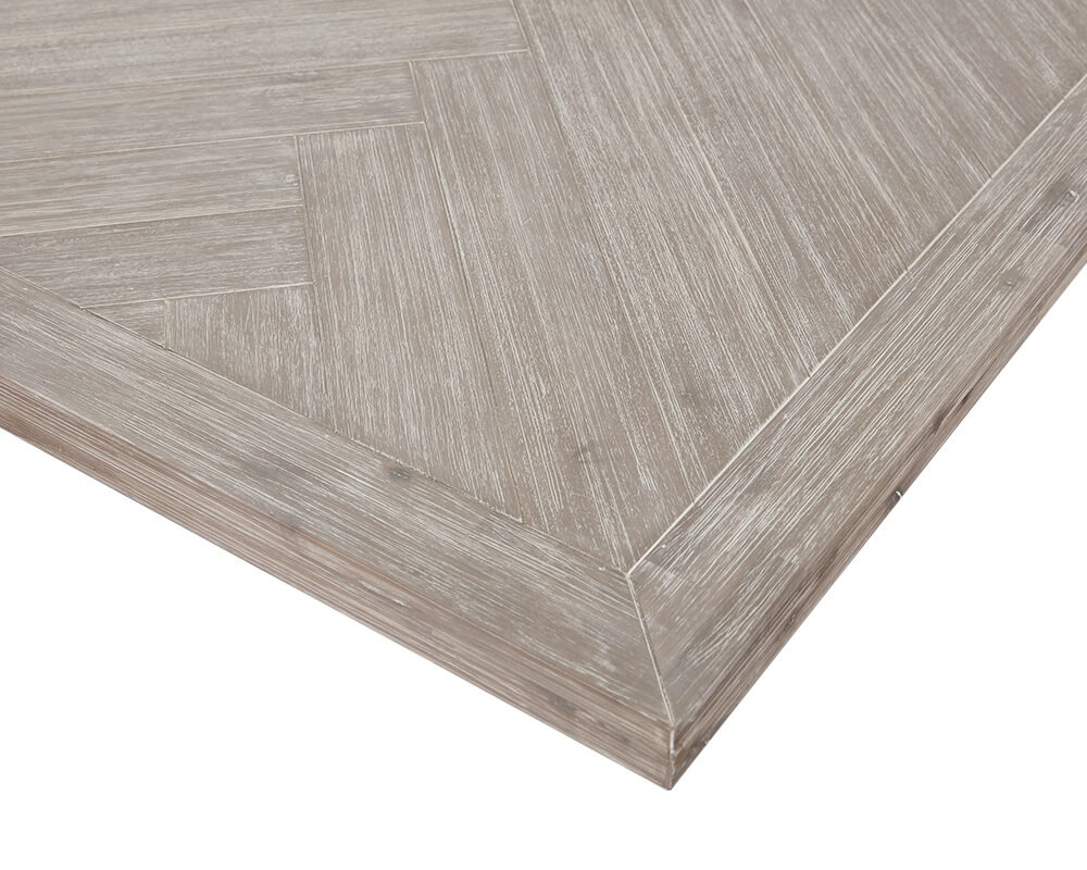 Brushed White Ceruse Finish / Acacia Veneer in Starburst Chevron Pattern / MDF / Adjustable Leveler