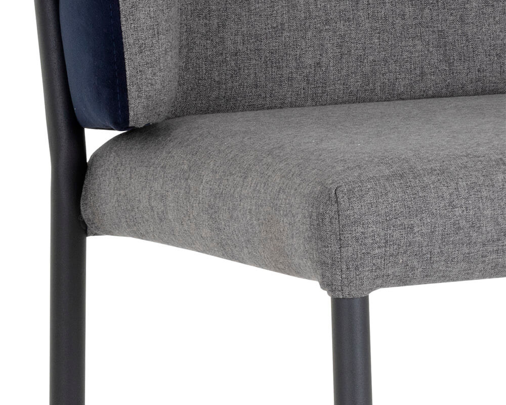 With a clean cut design, two-toned seatback in dark grey fabric completed with a black powder coated iron frame.