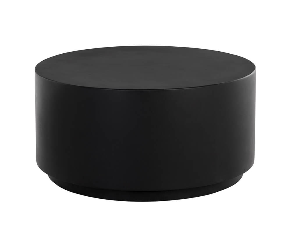 Bring contemporary style to any space with this perfectly round coffee table. Suitable for indoor and outdoor covered spaces. Also available in grey and terrazzo, along with a coordinating end table. Crafted from a natural concrete mix, each piece will look different, with variations of black hues that will enhance over time.