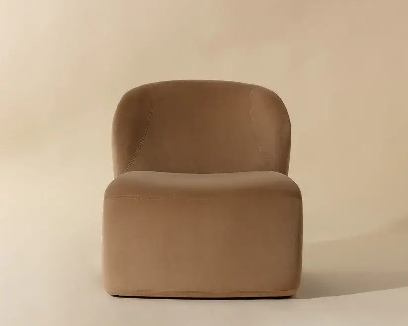 The Sophiene Lounge Chair is uniquely sculpted for exceptional comfort. Fully upholstered in smooth kona camel fabric for a cozy accent to any contemporary living space.