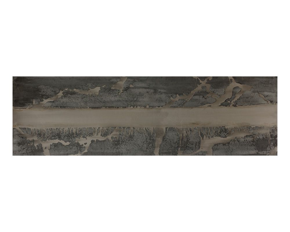 A traditional design comes to life with elements inspired by global travels. This console table is crafted with an iron top featuring a supernatural patina finish with an antique brass base. Made in India. With refined craftsmanship, this design was brought to life by skilled local artisans. By nature, these materials develop unique imperfections such as markings and colour variations for a truly one-of-a-kind piece.