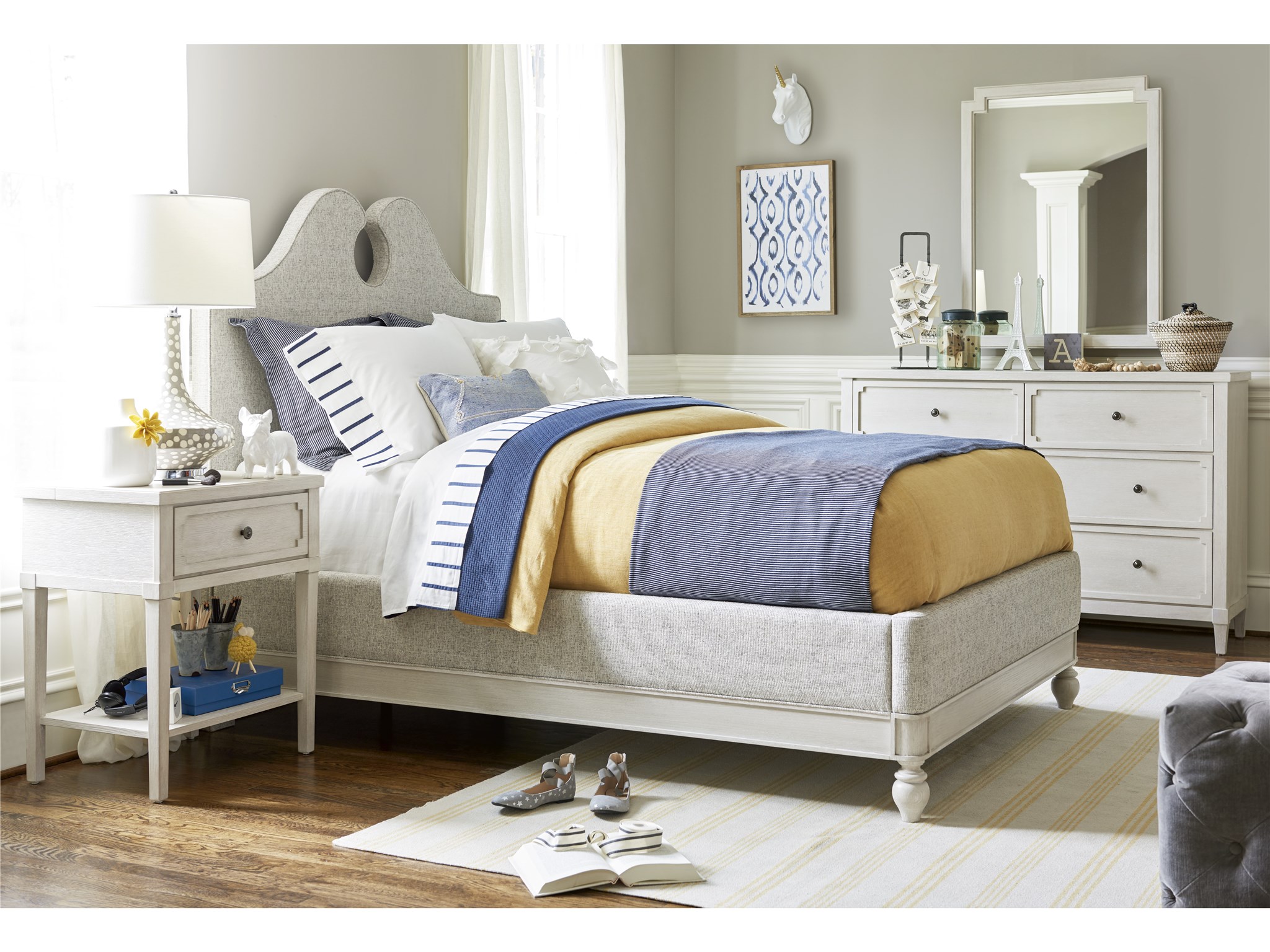 Draped in a soft upholstery fabric with a delicate keyhole accent on the headboard, the Serendipity Upholstered Bed brings charm and elegance to bedroom spaces.