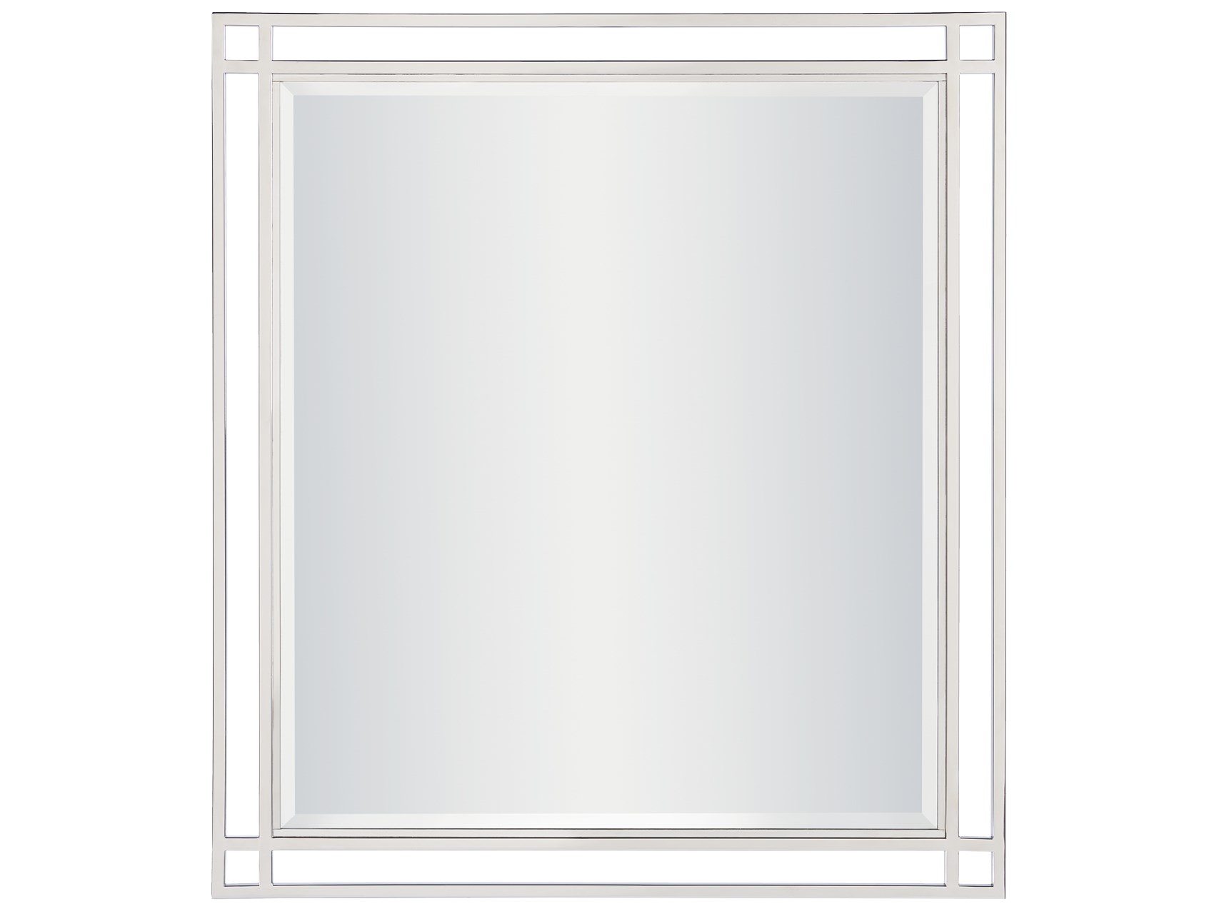 The beveled center of the Paradox Mirror is encompassed by a dually-framed silver exterior, creating a beautifully delicate home accent.