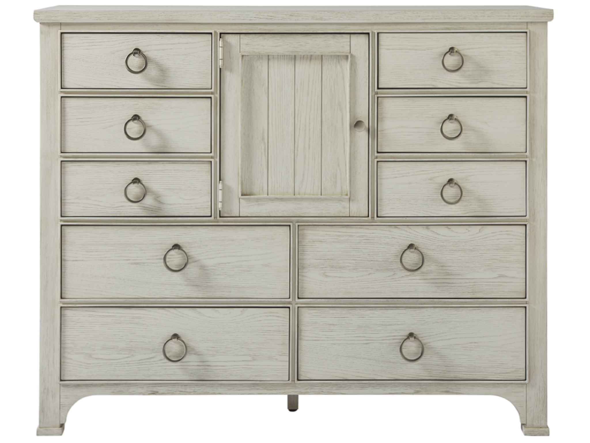 A plank-style center door is neatly framed by ten spacious drawers in the Escape Dressing Chest, a maximum storage solution with playful ring pulls.