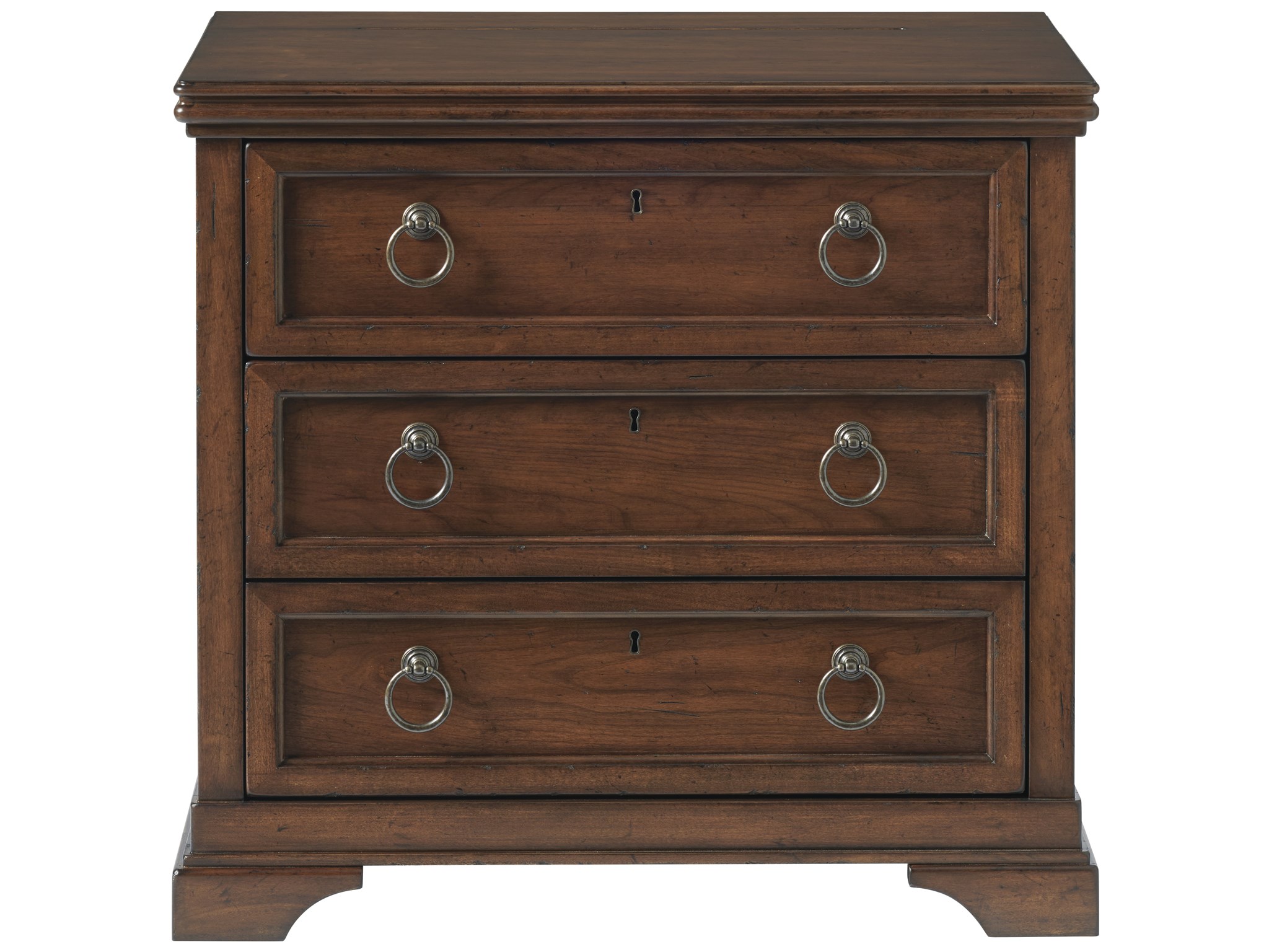 Add a refined touch to bedroom spaces with the Ardmore Nightstand, a traditional bedside punctuation with three ample-sized drawers and complementing ring-pull hardware details.