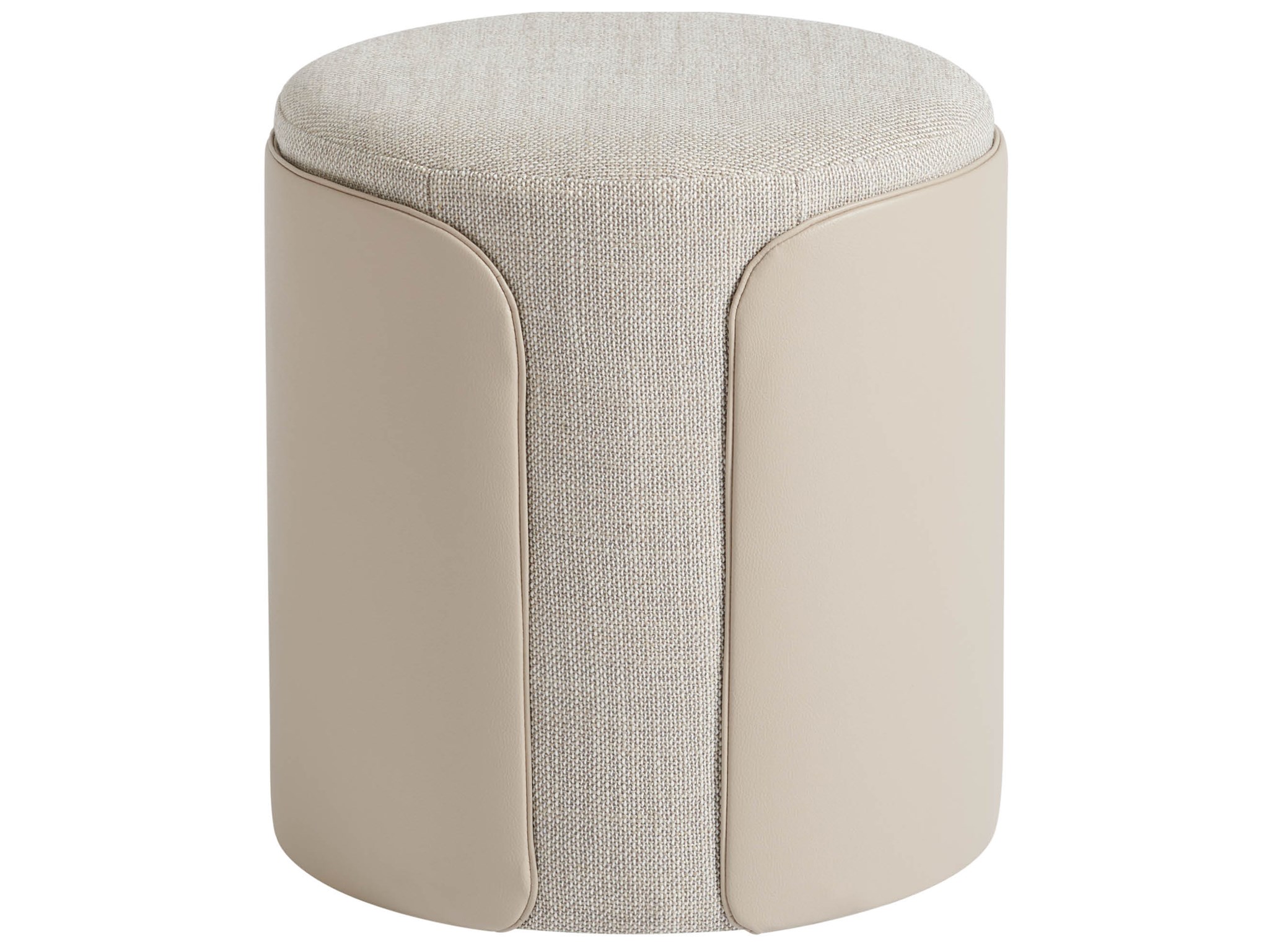 • Invite plush texture to living spaces with the Camille Round Ottoman, a upholstered home accent that is partially wrapped in faux leather.