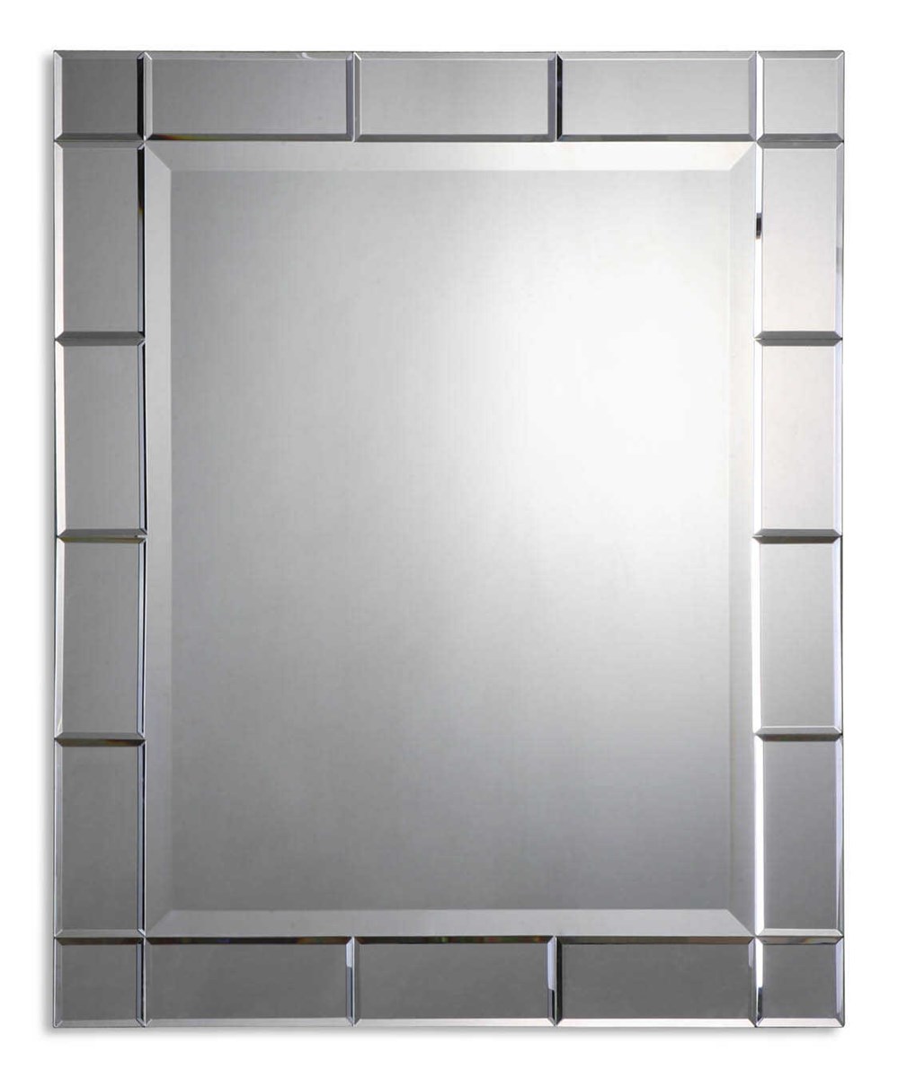 This mirror features a generous, 1 1/4" beveled center mirror accented by numerous beveled mirrors creating the mirror's frame. May be hung either horizontal or vertical.