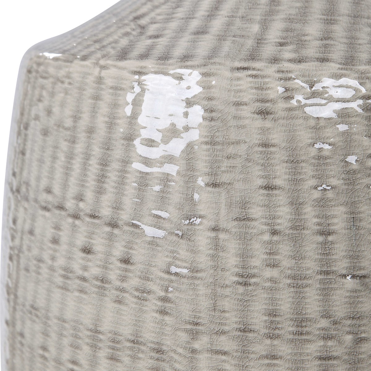 This ceramic base keeps it simple in shape, yet upscale with its fashionable pattern that's finished in a distressed light gray glaze, paired with brushed nickel plated accents. The hardback drum shade is light gray linen fabric.