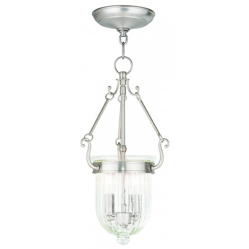 Light up that dark corner of your home or hang this melon jar pendant in multiples to achieve a warm, welcoming look. The ribbing on the glass portion of this pendant give it the classic melon jar shape. The brushed nickel finish also add to this pendants endearing charm.