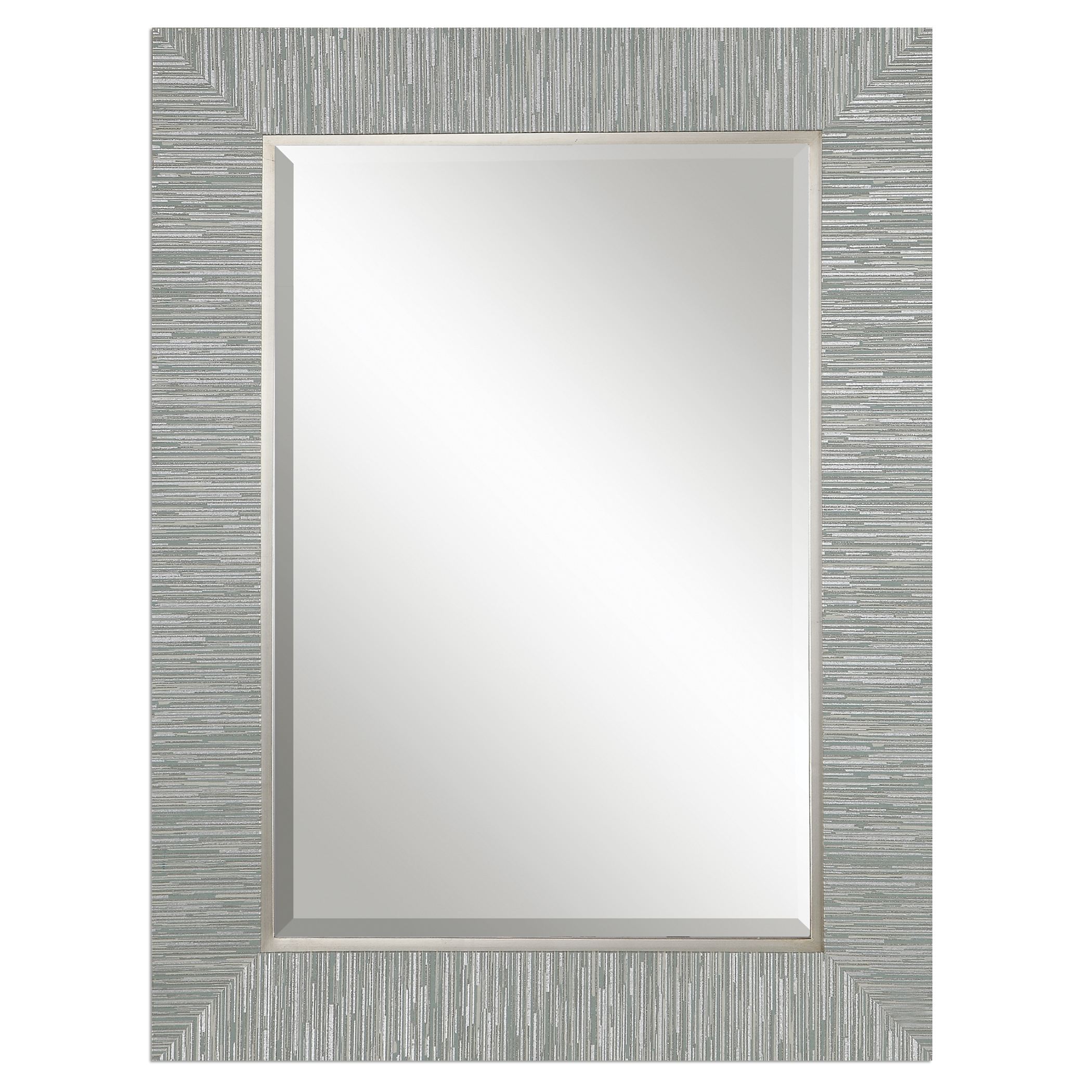 Solid Wood Frame With A Blue-gray And Silver Striped, Textured Wrap Finish Accented With A Silver Leaf Inner Lip. Mirror Is Beveled And May Be Hung Horizontal Or Vertical.
