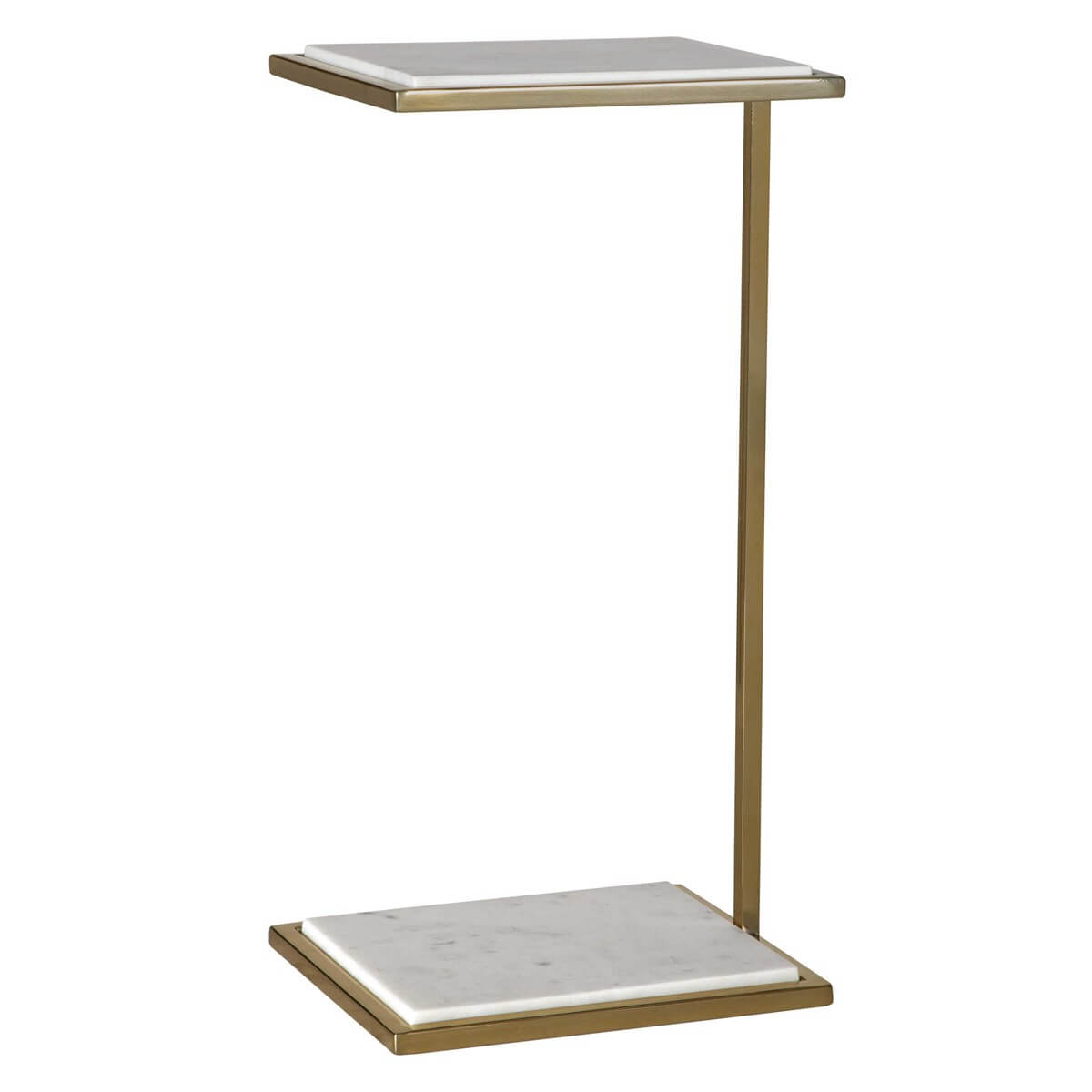 The Elevate drink table is ideal to pull up to your favorite seat and enjoy a beverage. Featuring a honed white marble top and base, framed in stainless steel plated in brushed brass. True to the nature of natural materials, each piece will have unique marbling and veining throughout.