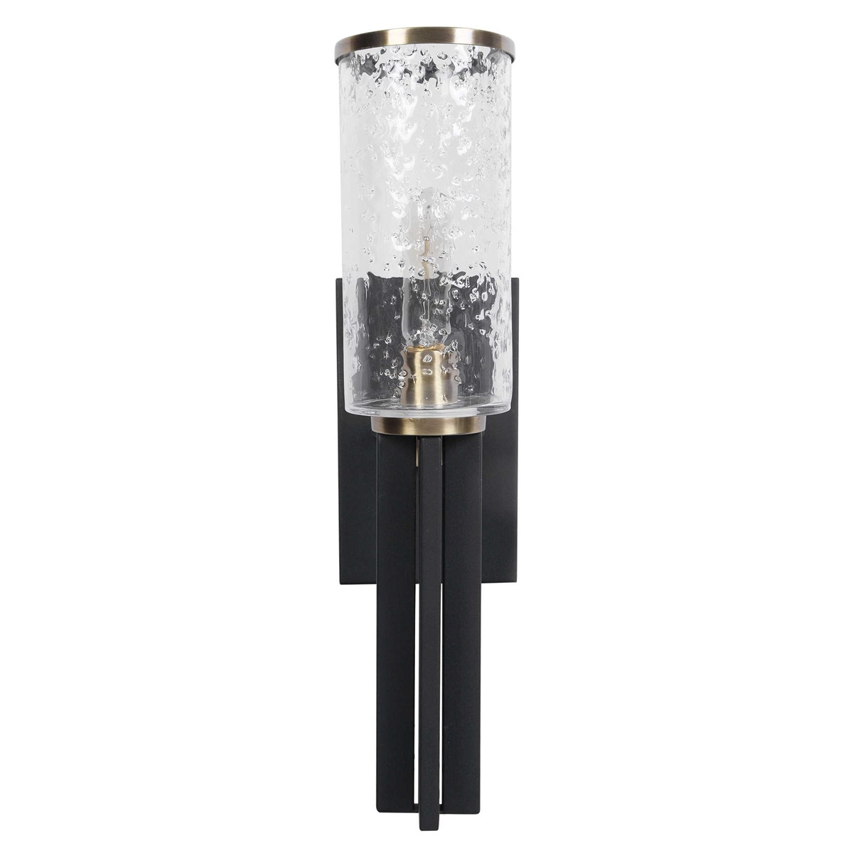 Refined Industrial With Clean Lines On Our 1 Lt. Wall Sconce Features A Sanded Black Finish On The I-beam Style Frame With Refined Antique Brass Accents And Clear Meteor Shower Glass Shades. With 1-60 Watt Max, Edison Socket And Includes 1-40 Watt T10 Clear Bulb.