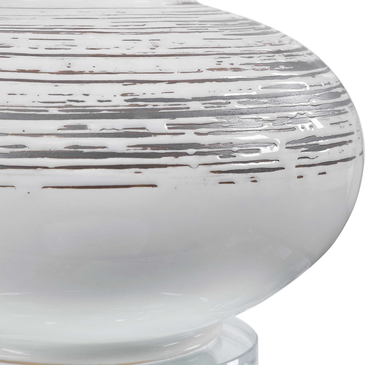 Inspired By The Bark Of A Birch Tree, This Accent Lamp Features A Ceramic Base Finished In Off-white With Dark Bronze Accents And Noticeable Texture And Distressing. The Piece Also Has A Crystal Foot And Brushed Nickel Details. The Lamp Is Paired With A Light Oatmeal Linen Fabric Shade.