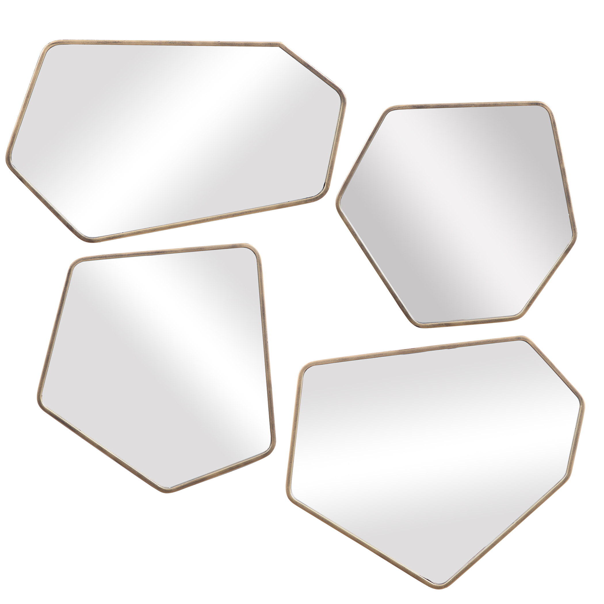 Scandinavian Inspired Mirrors Are Organically Shaped With Petite Metal Frames Finished In Aged Gold.