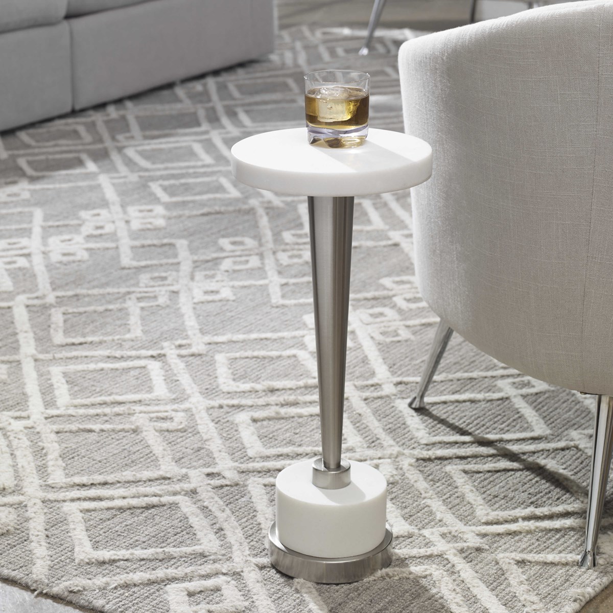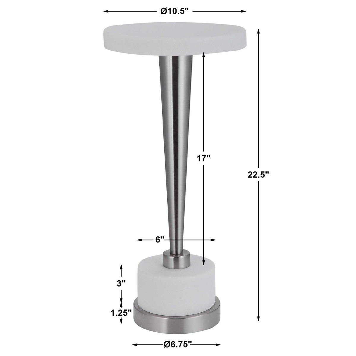 A Perfect Landing Spot For A Drink Or A Book, This Mixed Material Accent Elevates The Sophisticated Feel Of A White Marble Look With Modern Accents Of Brushed Nickel Plated Metal.