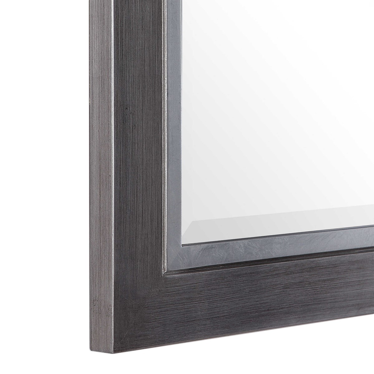 Constructed Of Solid Pine Wood, This Contemporary Mirror Has A Wrapped Tarnished Silver Finish Accented With A Metallic Silver Inner Edge. Each Mirror Is Encased By A 1 1/4" Bevel.
