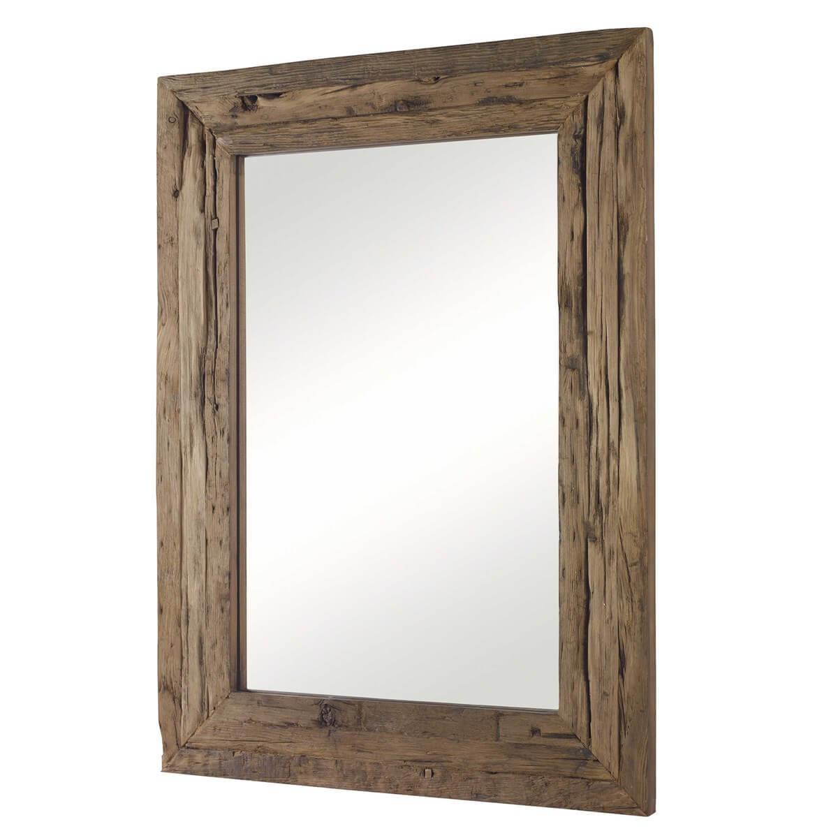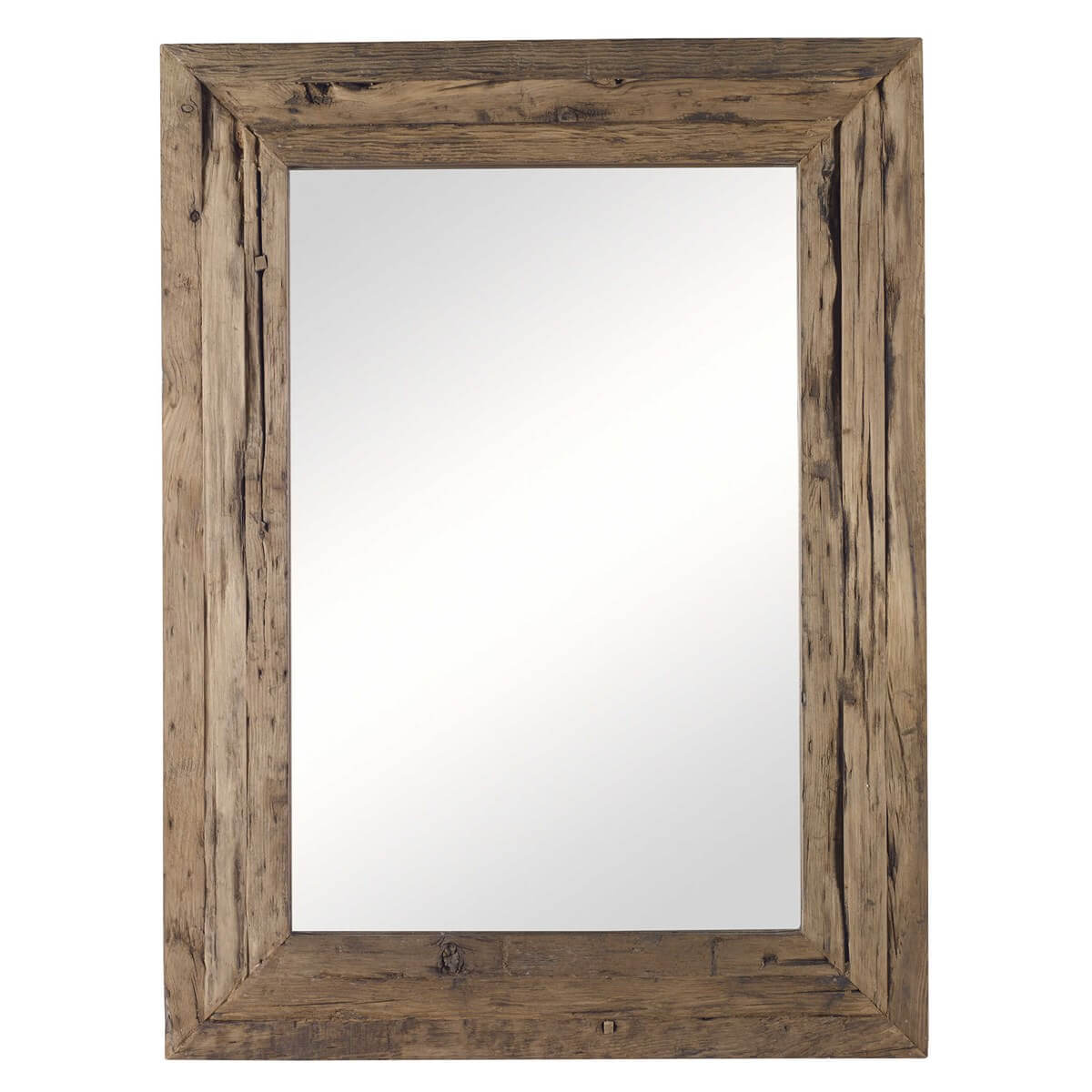 Rectangle mirror features a reclaimed, rustic pine wood frame.