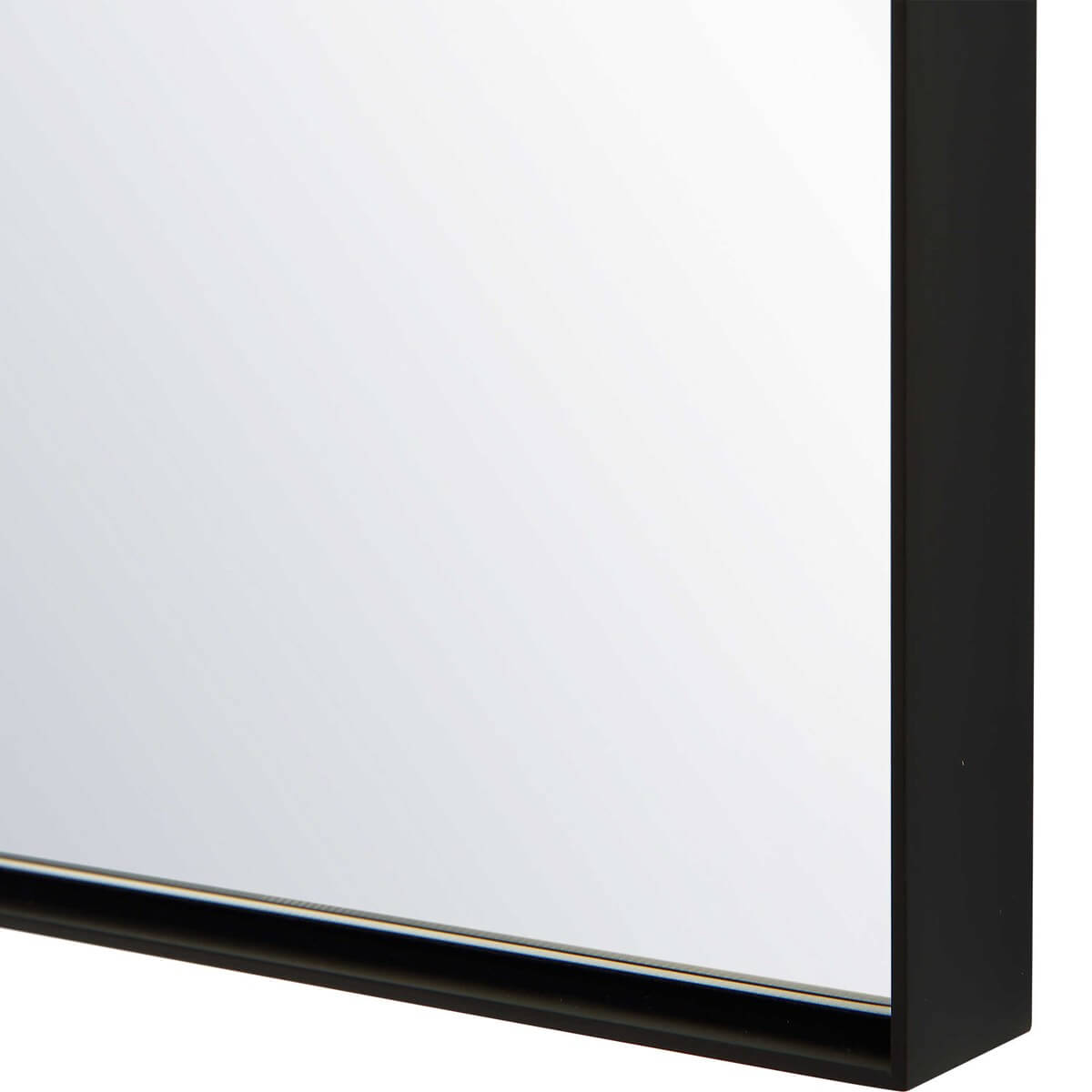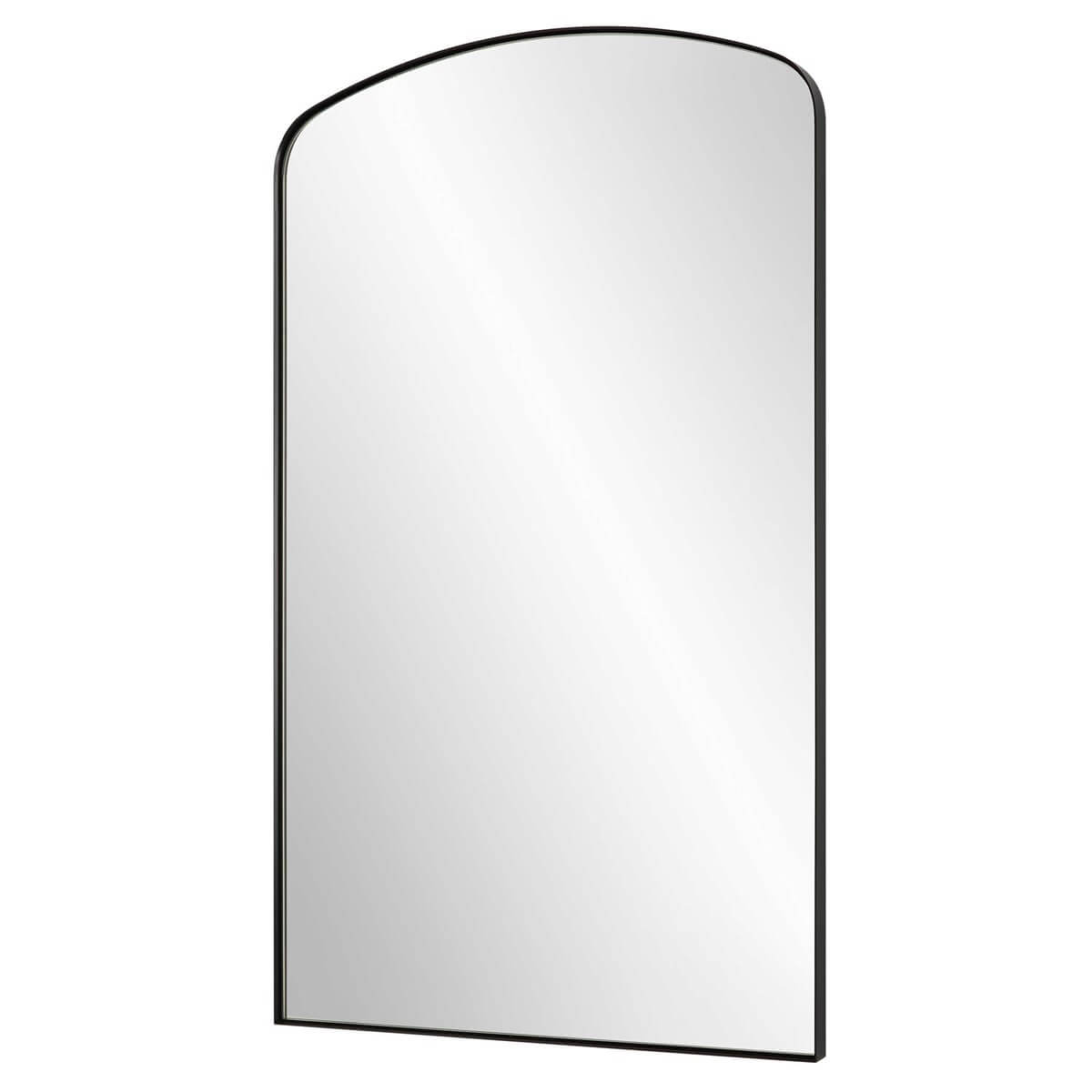 Crafted with a sleek iron frame, the Tordera Arch mirror features a satin black finish that surrounds a floating polished edge mirror.