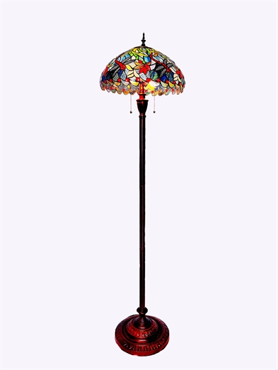 Dragonfly Tiffany Floor Lamp Stained Glass Floor Lamp *Shade is 16" * High 64" * 2 X100Watt * Double pull chains * Metal Base - Brown