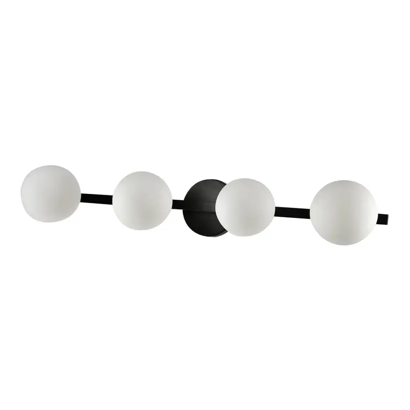 YOUNG LIGHTING 4 LIGHT WALL LAMP WITH GLASS SHADE MATTE BLACK 1500WL4-BK